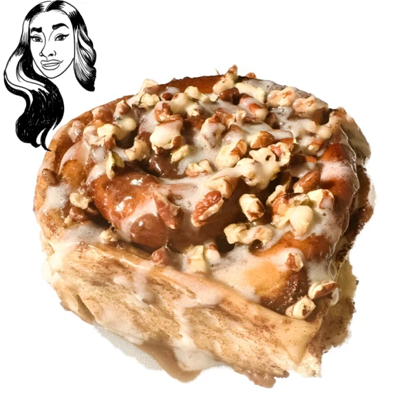 Our organic brioche, cinnamon roll tops with the homemade butter pecan sauce, and a drizzle of our homemade cream cheese, icing (optional).