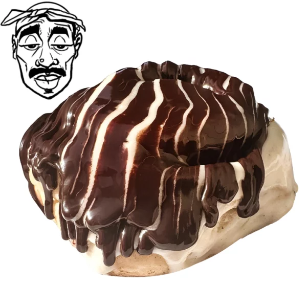 Our homemade organic cinnamon bun topped with our homemade cream cheese icing and a decadent chocolate swirl.